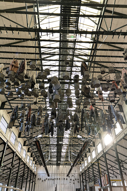 Lorsque nous arrivons ce jeudi en fin d’après-midi nous sommes saisis par la dimension du chevalement ! Nous entrons ensuite dans les anciens lavabos de la mine appelés la salle des pendus. Nous avons la chance ce jour-là de bénéficier d’une visite à deux voix. La jeunesse de Palmyrah complétée par le témoignage de Marcel, ancien mineur et bénévole en ce lieu, est une preuve supplémentaire s’il en fallait de l’ancrage minier dans l’histoire locale. On découvre alors ce qu’était la vie de mineur de fond, leurs difficultés, le partage, la vie familiale, les luttes, les premiers syndicats et on en apprend davantage sur les différentes qualités de charbon. Julien, mon plus jeune reste captivé par l’exposition de fossiles. Axel demeure silencieux quand notre guide explique que certains enfants à peine plus âgés que lui descendait déjà dans la mine ! Un travail pénible et dangereux. En soupesant les outils utilisés au quotidien par ces enfants, il prend d’ailleurs la mesure de ce qu’étaient leurs conditions de travail : extrêmes et extrêmement périlleuses. Dans la salle des machines, l’émotion de Marcel est palpable et les enfants sont des plus intéressés par ces machineries énormes et les wagonnets qui transportaient le charbon dans les galeries.